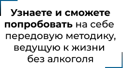 Узнаете и сможете попробовать на себе передовую мотодику, ведущую к жизни без алкоголя